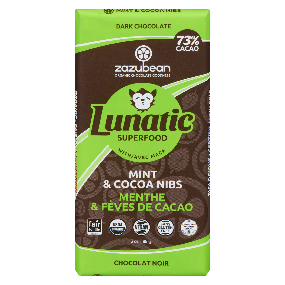 Girls, you can now self-soothe with Zazubean's chocolate called Lunatic. This 73% dark mint chocolate with roasted cocoa nibs infused with Maca root will take the edge off & cool that monthly madness.