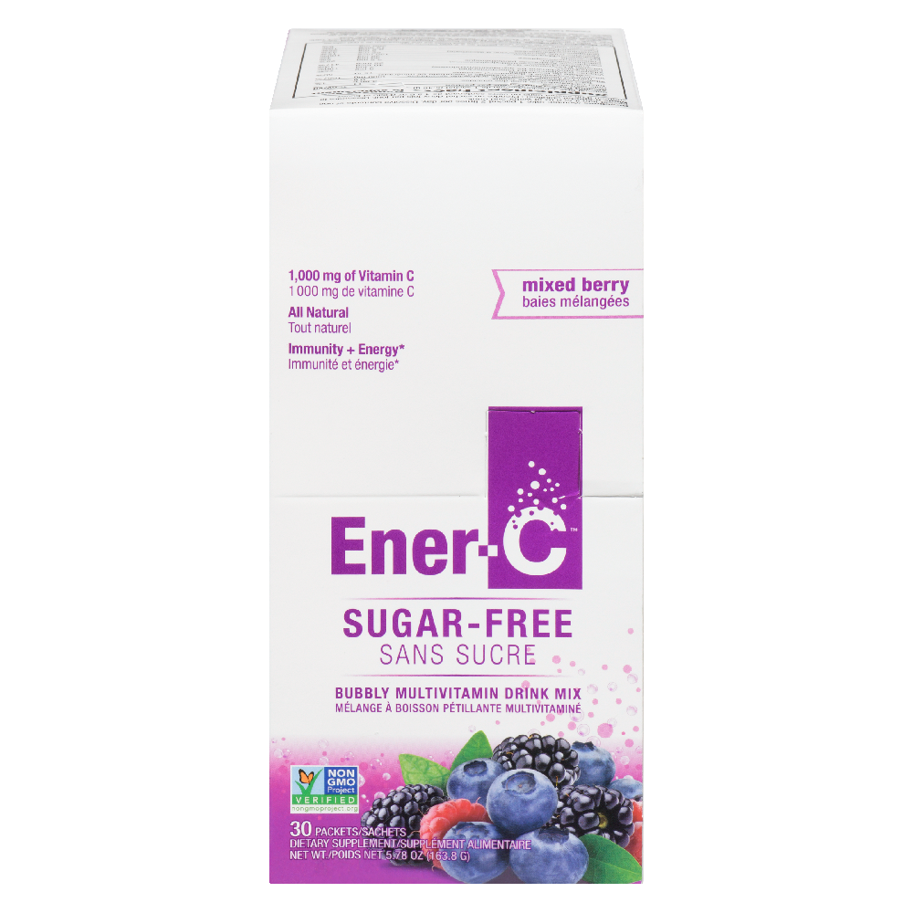 Non Medicinal Ingredients: Erythritol, Citric Acid, Natural Berry Juice Powders, Sodium bicarbonate, DL-Malic Acid, Tapioca Maltodextrin, Beet Juice Colour, Purified Stevia Leaf Extract, Raspberry Juice Powder, L-Tartaric Acid, Silicon Dioxide, L-Aspartic Acid, L-Cysteine, Glycine.