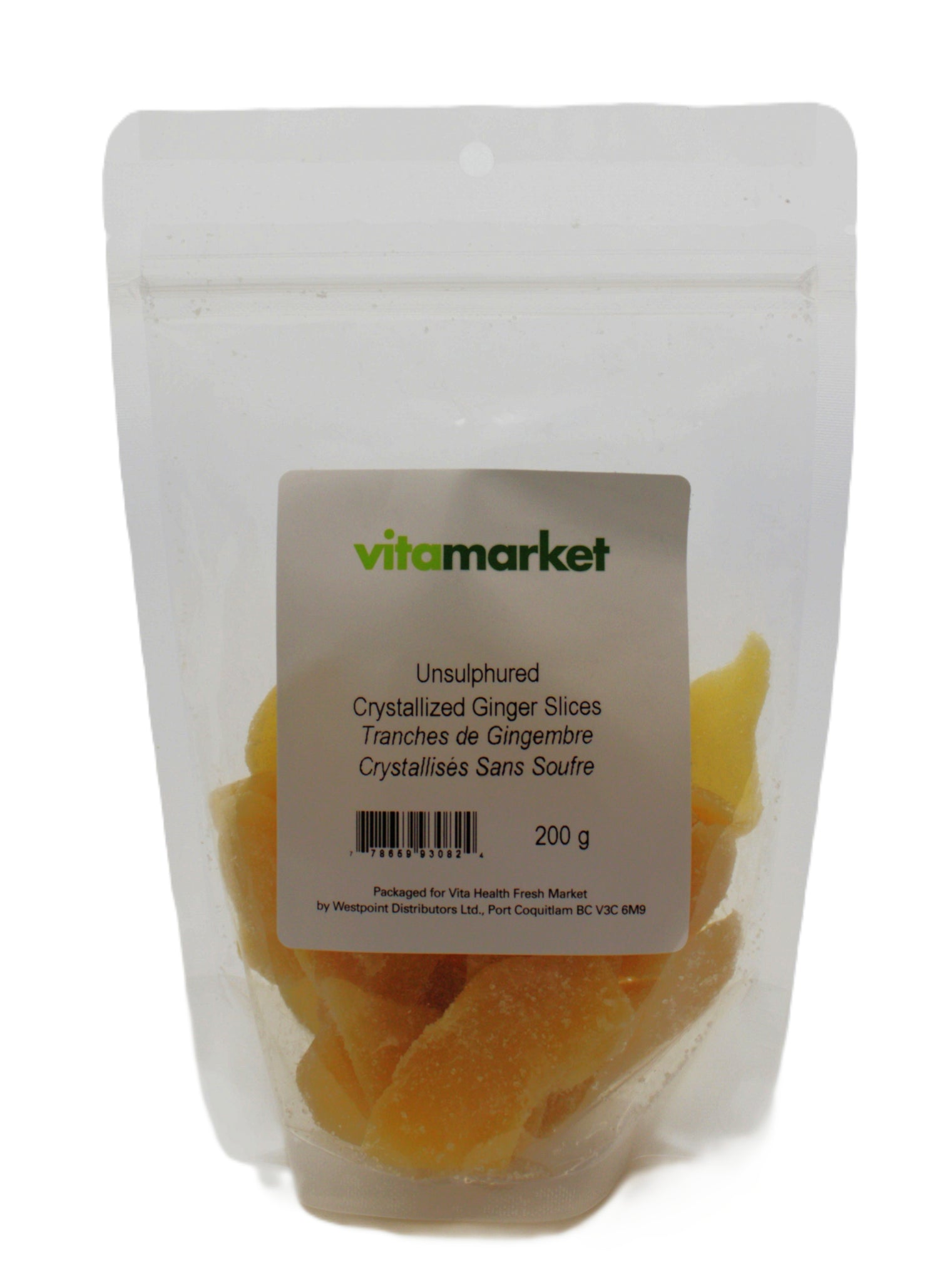 Crystallized candied ginger are dried pieces of natural ginger root that have a sweet and spicy flavor which adds a sparkle and tang to every dish it is added to. This premium delightful treat is all natural, non-GMO and unsulphured, preserving all of the well-known health benefits of ginger root.