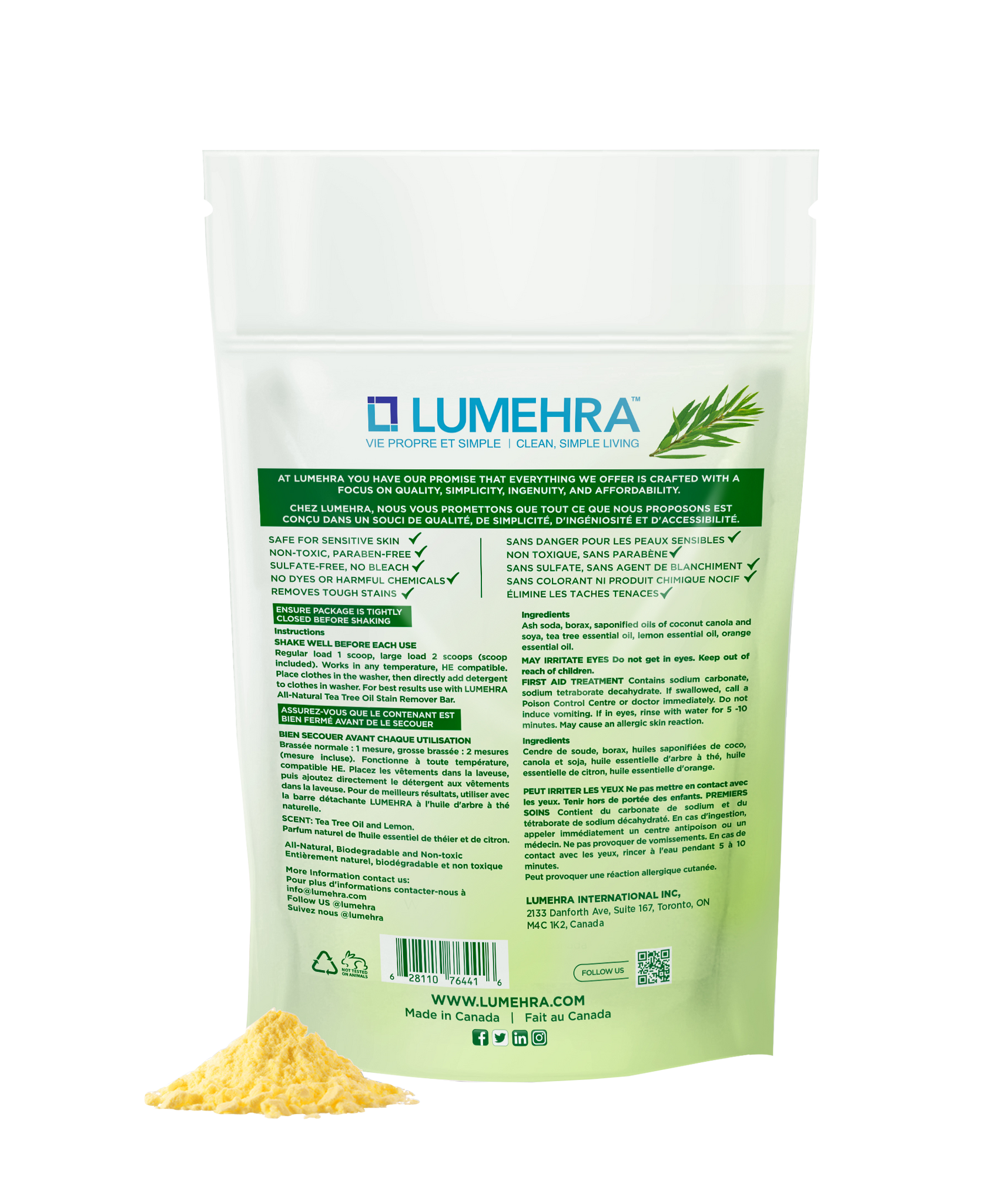Lumehras natural laundry detergent (with tea tree oil) not only removes tough stains but also has the following features:
